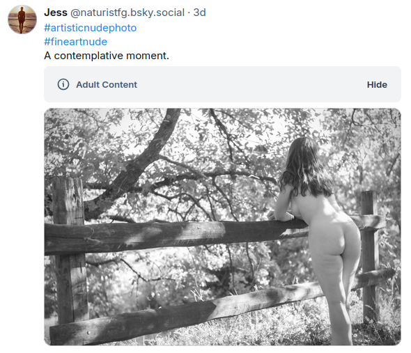 Yes, it’s possible to appeal, but that is extra work. Looking at other naturist accounts on there, quite a few naturists appear to have come to Bluesky, done a few posts, and then stopped using it.